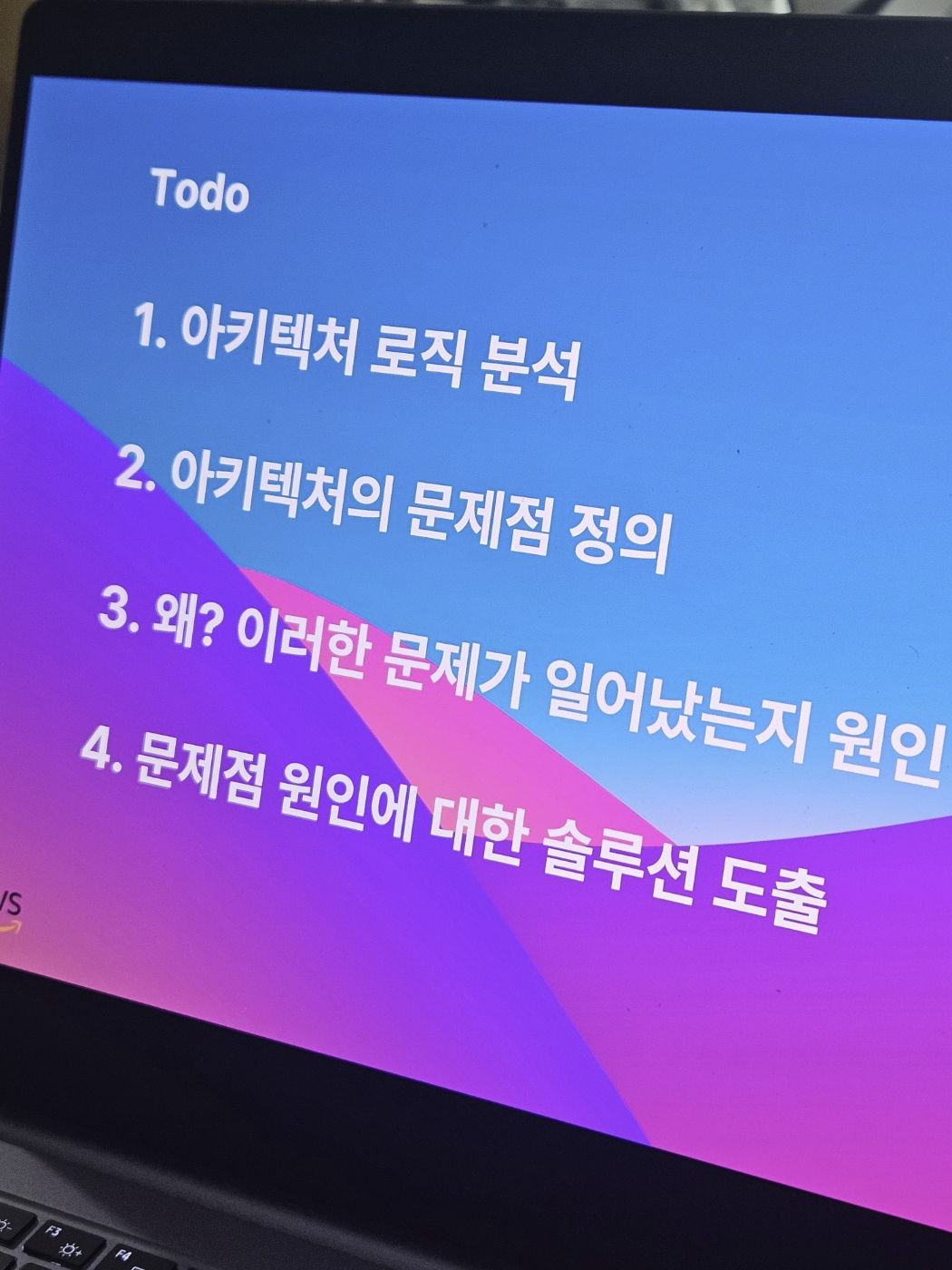 두번째 날에는 오전에 부심사장님이 전국기능경기대회에서 1과제랑 비슷한 느낌의 과제를 제공해주셨고 많이 해봤던 서비스들과 구성이라 쉽게 문제를 풀어나갔습니다. 끝나고 나서는 부심사장님이 어떻게 구축해나가야하는지 가이드라인을 알려주셔서 열심히 노션에 메모하였습니다. 오후에는 심사장님이 오셔서 아키텍처를 하나 보여주시고 해당 아키텍처의 대해 문제점을 찾고 어떻게 해결해나가야하는지 이야기 하는 시간과 과제를 부여받았습니다. 여기서 심사장님이 갑자기 오셔서 아키텍처를 보여주시고 질문을 하셨는데 머리가 하얗게 변하기도 했고.. 솔직히 심사장님이 무서워서.. 답변을 제대로 하지 못했습니다.. 그리고 숙소로 돌아가 답변하지 못했던 아키텍처를 열심히 분석하였고 새벽까지 PPT를 완성했습니다.