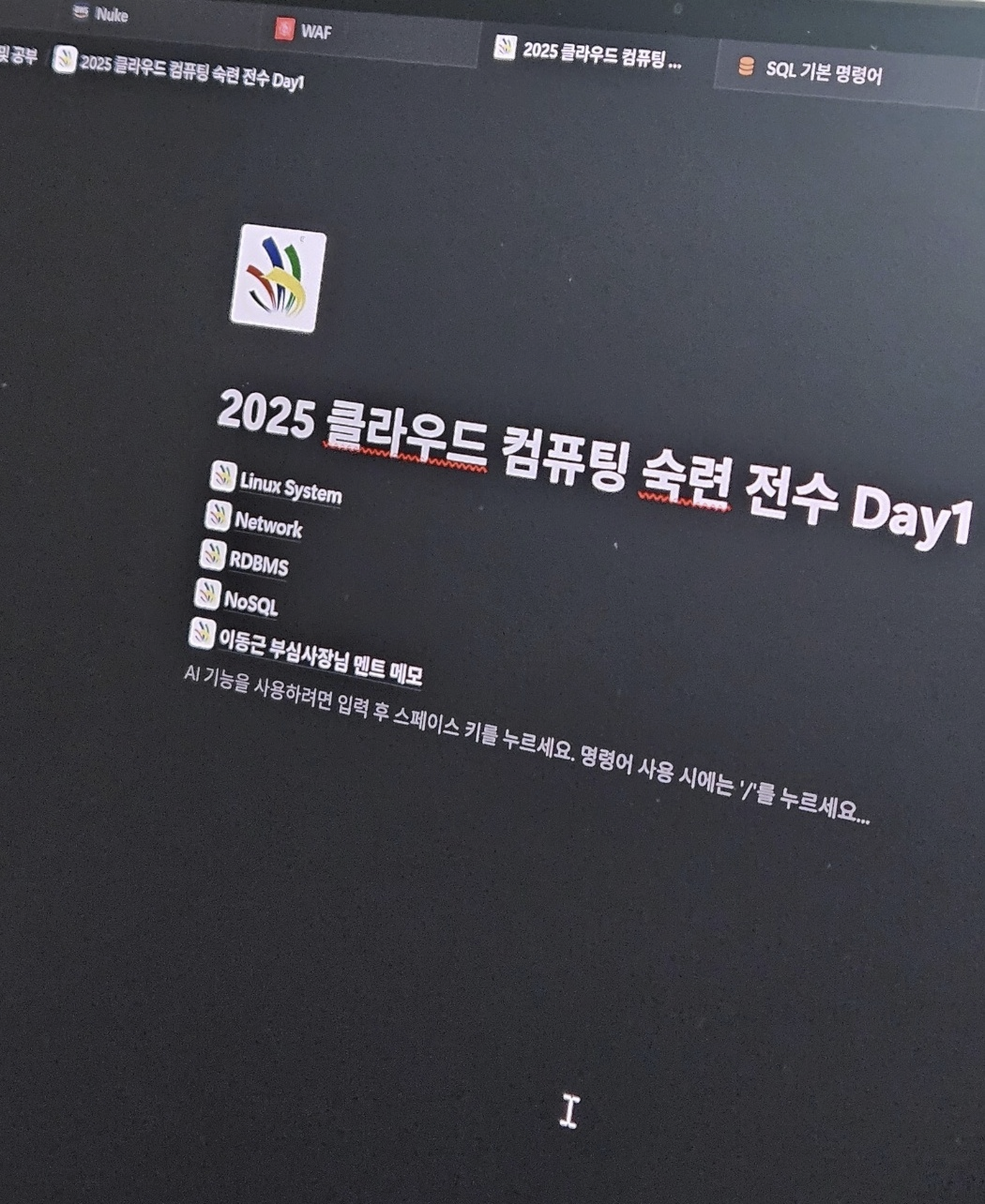 고등학교 1학년 때부터 클라우드 공부를 해왔고 2학년부터 시작해 지금 3학년이 된 현재까지 클라우드 컴퓨팅 분야의 기능경기대회 선수로 꾸준히 활동해왔습니다. 그리고 올해, 드디어 전국기능경기대회에 첫 출전하는 기회를 얻게 되었습니다.