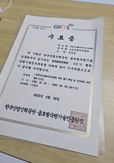 또한 6월 5일부터 8일까지 한국산업인력공단 글로벌 숙련기술 진흥원에서 진행된 GIFTS 협력 숙련기술 전수 과정에도 참여하게 되었고, 이번 글에서는 그 경험에 대해 간단히 후기를 남겨보려 합니다.